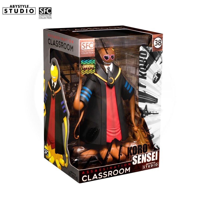Po zničení Měsíce přilétá Koro Sensei na Zemi nejen proto, aby vzdělával třídu hlupáků, ale také aby dosáhl řady figurek ABYstyle Studio! Tato zlomyslná mimozemská chobotnice, oblečená v uniformě svého učitele, mění barvu pleti podle svých emocí. Zde v hnědé verzi, tedy opálená kůže.