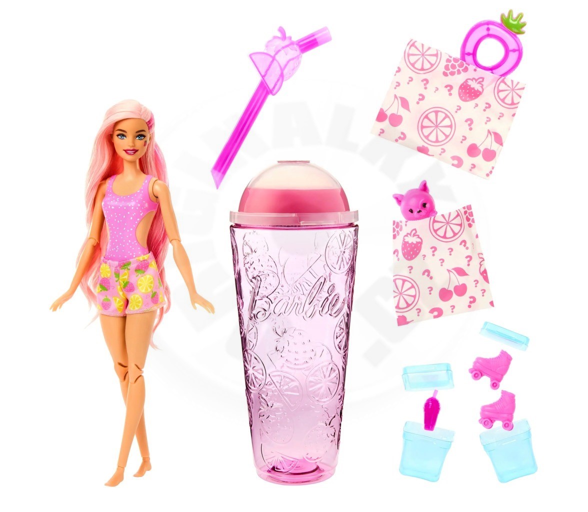 Panenka Barbie® Pop Reveal™ potěší děti tematikou šťavnatého ovoce a novým zážitkem při rozbalování, kdy pomocí slizu odhalí překvapení, mezi něž patří panenka Barbie® s vůní ovoce a kostky ledu, které při prasknutí odhalí další překvapení.