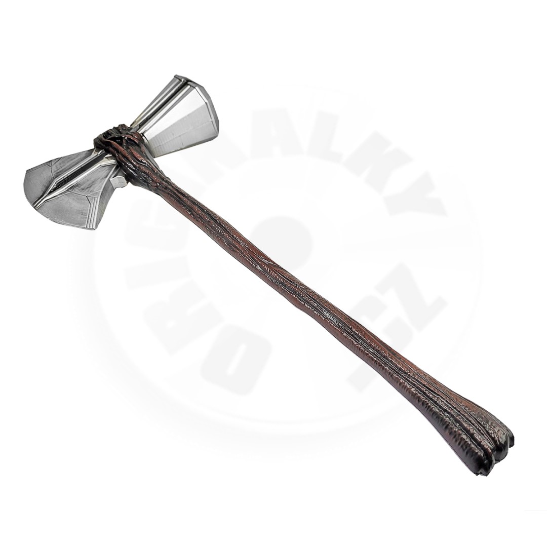 Když Thor přišel o své kladivo Mjolnir, musel najít novou variantu, se kterou by se dokázal postavit Thanosovi. Proto navštívil Nidavelir, kde rozpálil výheň a přesvědčil krále trpaslíků Eintriho, aby mu vykoval mocnou zbraň. A tak vznikl Stormbreaker, sekera, kterou ovládá sám bůh Thor, a která může nyní patřit i Vám! A to v nové měkčené verzi!
