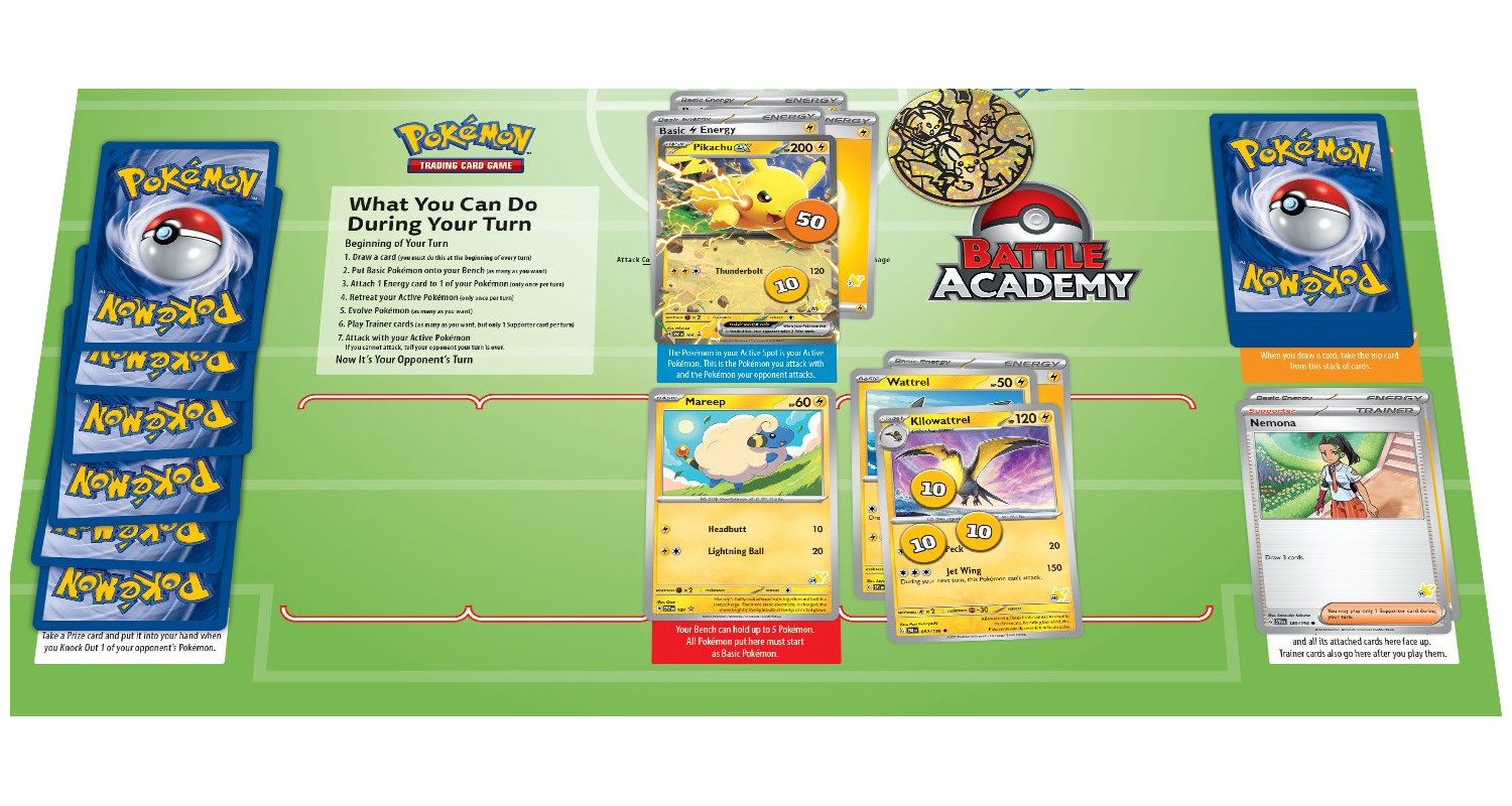 Staňte se sběratelem a trenérem pokémonů s Pokémon Trading Card Game. Sestavte si své karetní balíčky a porážejte soupeře s lehkostí. Pokémon TCG: Battle Academy 2024 je jedinečná sada, která tě provede hrou Pokémon TCG. Tato výuková sada s pravidly obsahující 3 balíčky karet určené ihned k hraní!